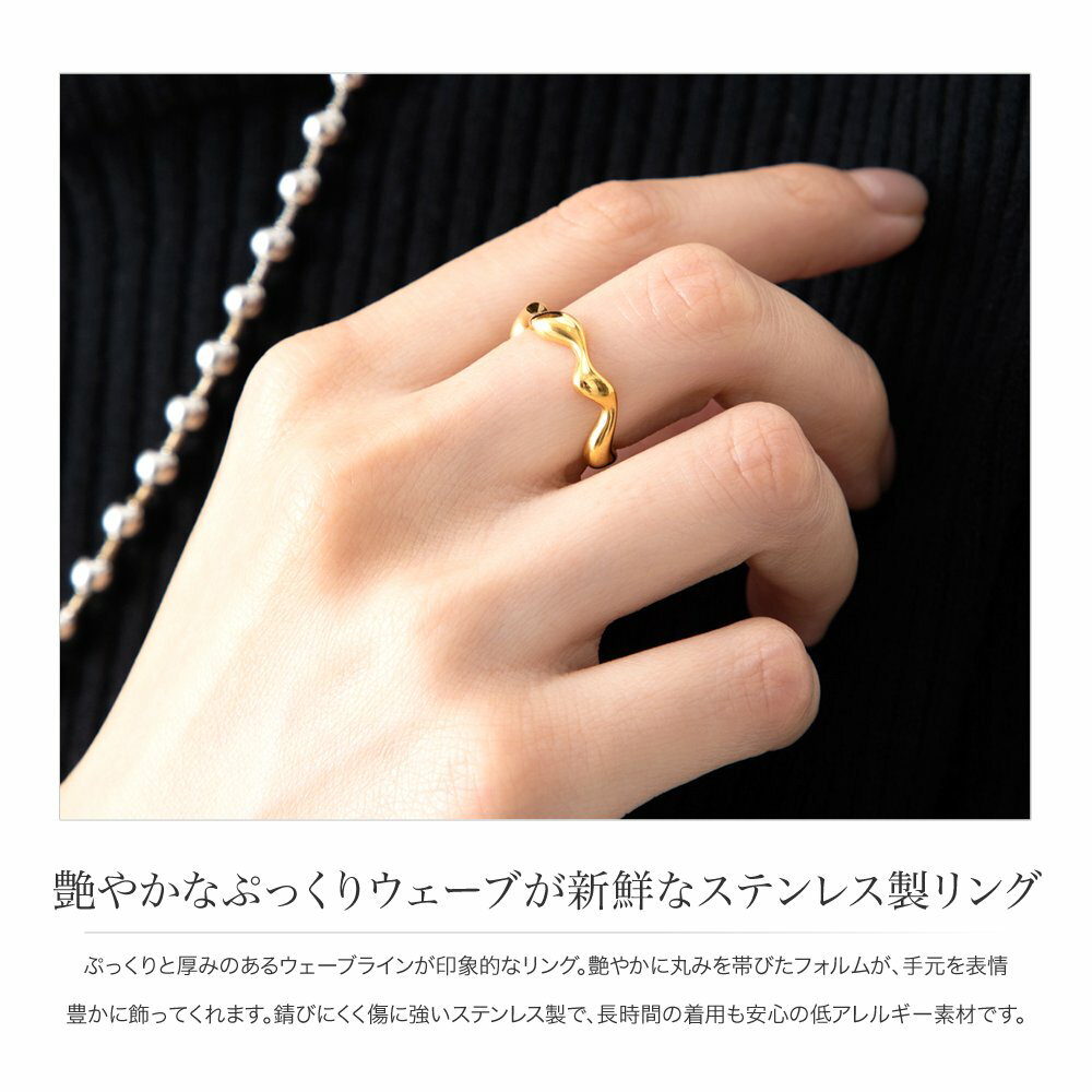 【ゆうパケットOK】艶やかなぷっくりウェーブが新鮮なステンレス製リング サイズ リング幅 0.4cm リングサイズ 12号:16.7mm 15号:17.7mm 17号:18.3mm 重さ 2.3g〜2.5g(サイズによって若干異なります。