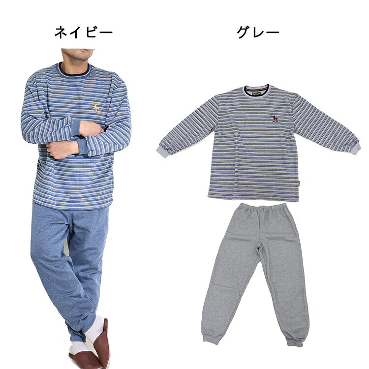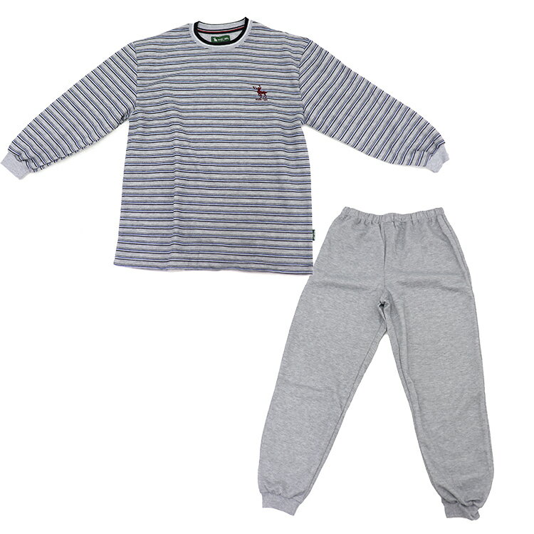 (Nordic Light)肌側 綿100% スウェットパジャマ メンズ スウェット パジャマ 入院 快眠 ニット 上下セット ボーダー 柄入り